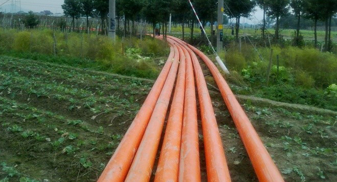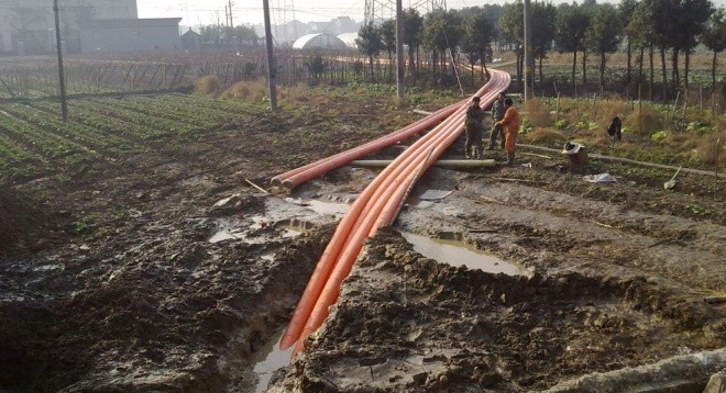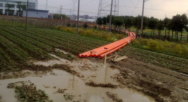 工程概况:富阳市杭富沿江公路非开挖电缆保护管工程从白鹤变横穿沿江公路、富春江的北江至东洲岛,工程顶距长350米,流沙土质。施工时气候恶劣,环境复杂,顶距长,沉降压力大,对MPP电缆保护管的质量、热熔焊接技术是严峻的考验。由我公司提供的MPP电缆保护管,经本公司专业焊接队的现场焊接施工,一次性拖拉成功。工程至2010年1月底运行至今安全可靠、性能良好。